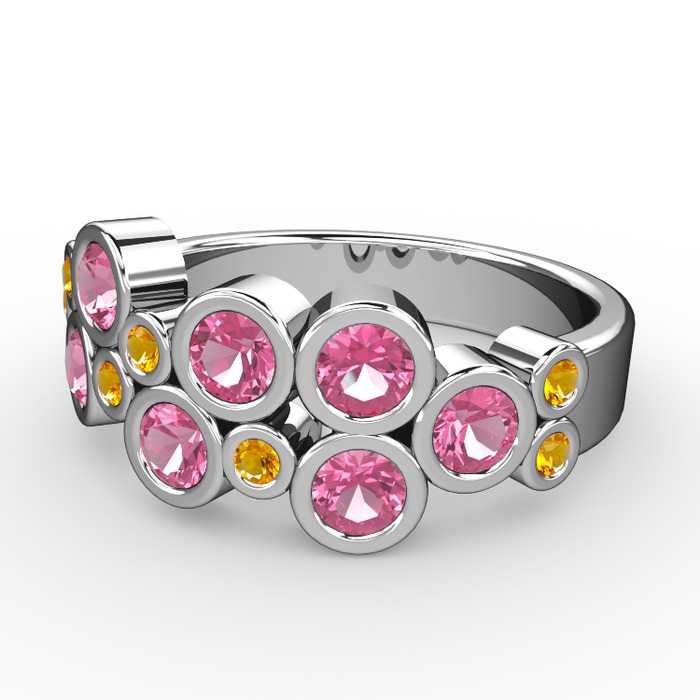 Pembe kuvars ve sitrin 14 ayar beyaz altın yüzük