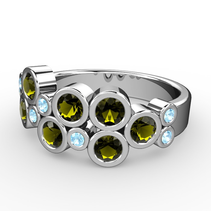 Peridot ve akuamarin 14 ayar beyaz altın yüzük