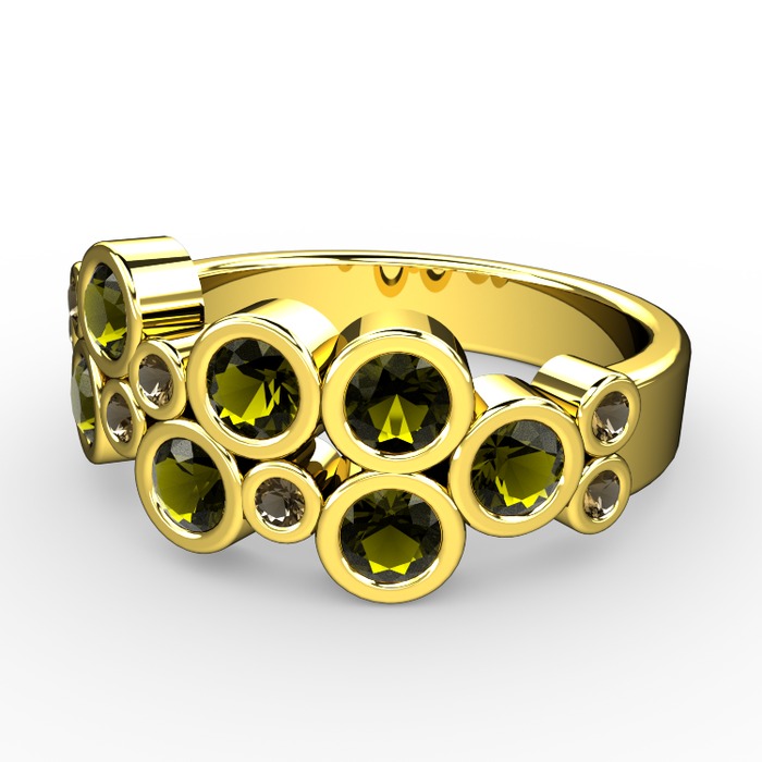 Peridot ve dumanlı kuvars 18 ayar altın yüzük