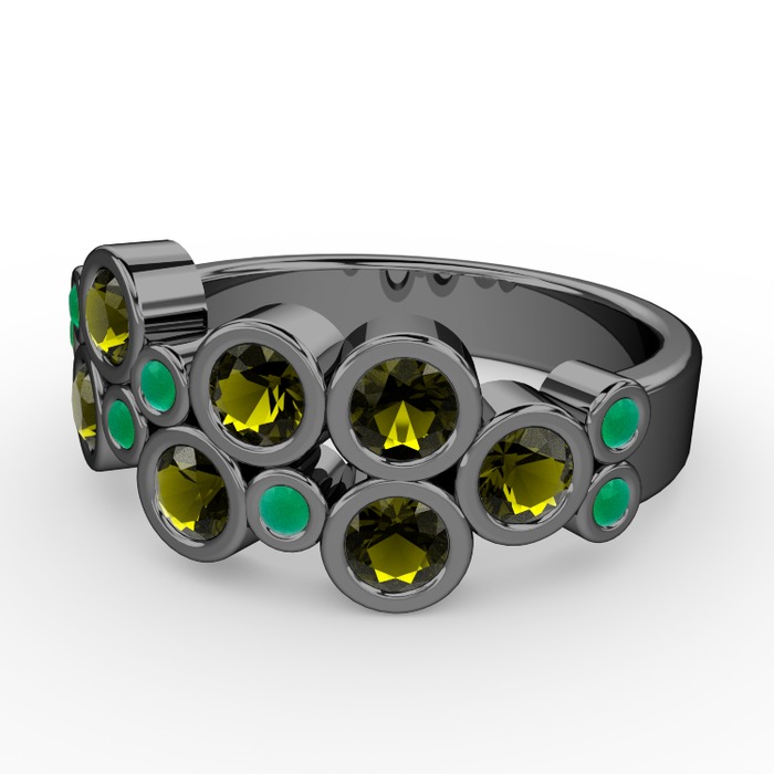Peridot ve kök zümrüt 925 ayar siyah rodyum kaplama gümüş yüzük