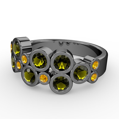 Peridot ve sitrin 925 ayar siyah rodyum kaplama gümüş yüzük