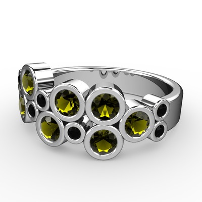 Peridot ve siyah zirkon 8 ayar beyaz altın yüzük