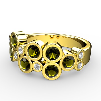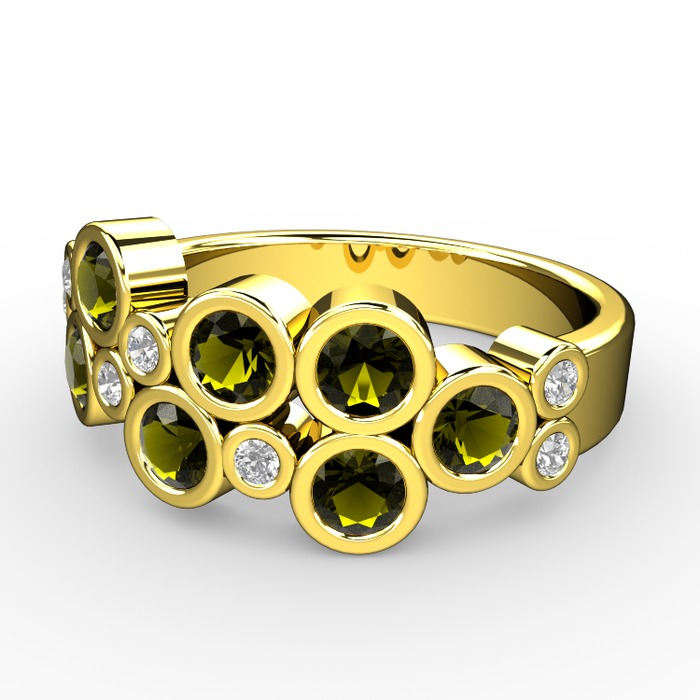 Peridot ve swarovski 925 ayar altın kaplama gümüş yüzük