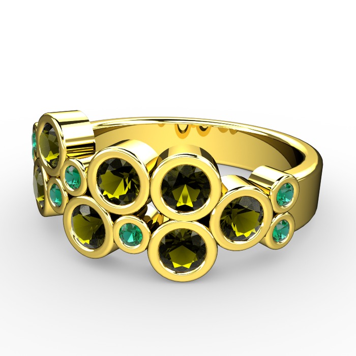Peridot ve yeşil kuvars 925 ayar altın kaplama gümüş yüzük