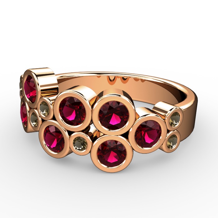 Rodolit garnet ve dumanlı kuvars 925 ayar rose altın kaplama gümüş yüzük
