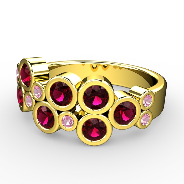 Rodolit garnet ve pembe kuvars 8 ayar altın yüzük