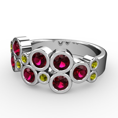 Rodolit garnet ve peridot 14 ayar beyaz altın yüzük
