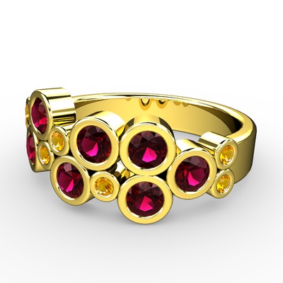 Rodolit garnet ve sitrin 925 ayar altın kaplama gümüş yüzük
