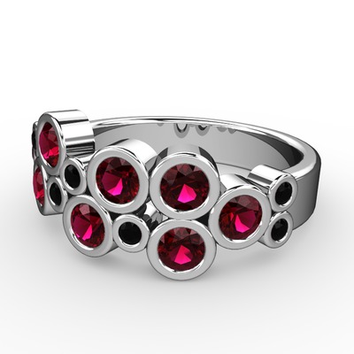 Rodolit garnet ve siyah zirkon 14 ayar beyaz altın yüzük
