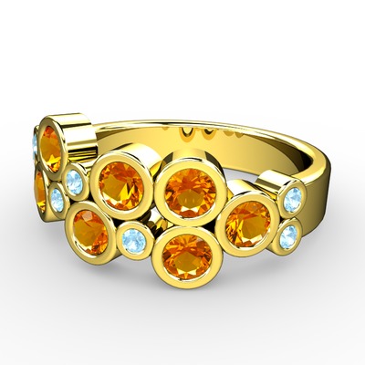 Sitrin ve akuamarin 8 ayar altın yüzük