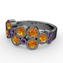 Sitrin ve ametist 925 ayar siyah rodyum kaplama gümüş yüzük