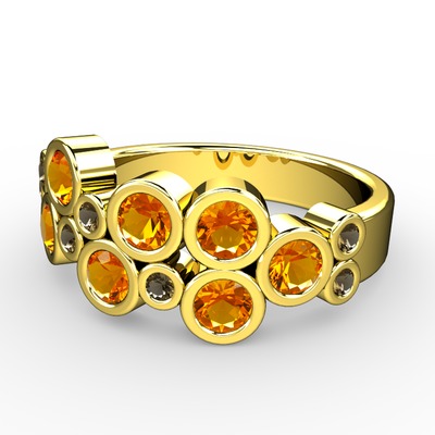 Sitrin ve dumanlı kuvars 14 ayar altın yüzük