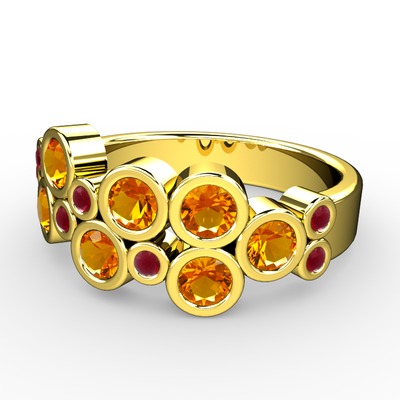 Sitrin ve kök yakut 18 ayar altın yüzük