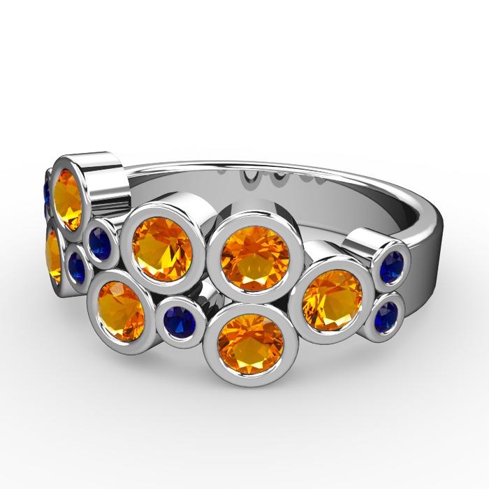 Sitrin ve lab safir 18 ayar beyaz altın yüzük