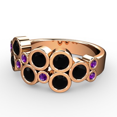 Siyah zirkon ve ametist 925 ayar rose altın kaplama gümüş yüzük