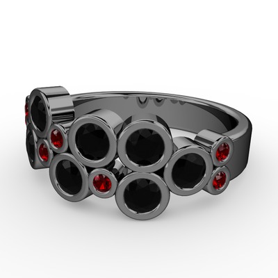 Siyah zirkon ve garnet 925 ayar siyah rodyum kaplama gümüş yüzük