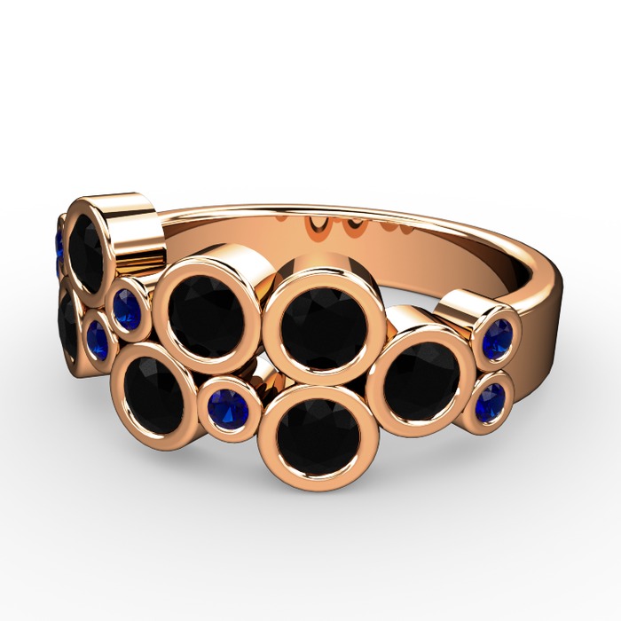 Siyah zirkon ve lab safir 925 ayar rose altın kaplama gümüş yüzük