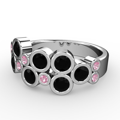 Siyah zirkon ve pembe kuvars 18 ayar beyaz altın yüzük