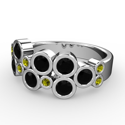 Siyah zirkon ve peridot 8 ayar beyaz altın yüzük