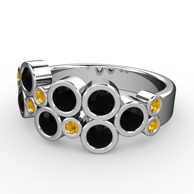 Siyah zirkon ve sitrin 8 ayar beyaz altın yüzük