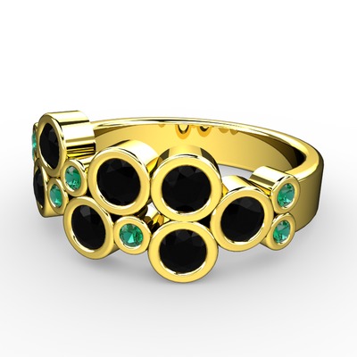 Siyah zirkon ve yeşil kuvars 14 ayar altın yüzük