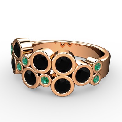 Siyah zirkon ve yeşil kuvars 18 ayar rose altın yüzük