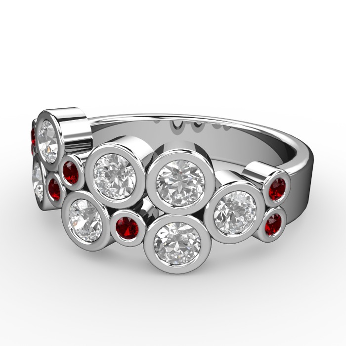 Swarovski ve garnet 14 ayar beyaz altın yüzük
