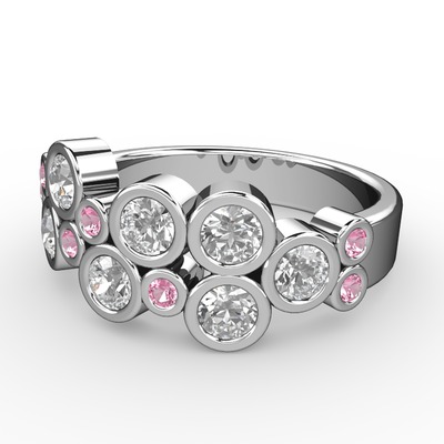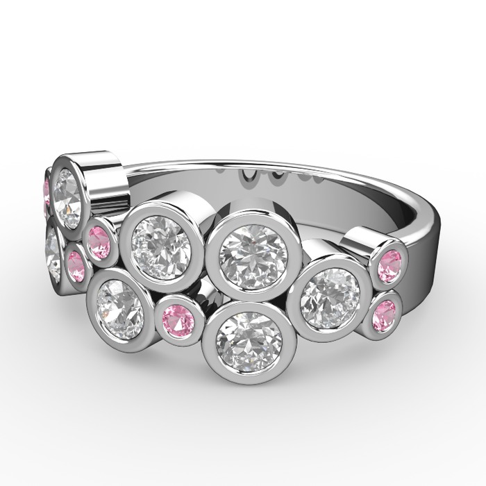 Swarovski ve pembe kuvars 8 ayar beyaz altın yüzük