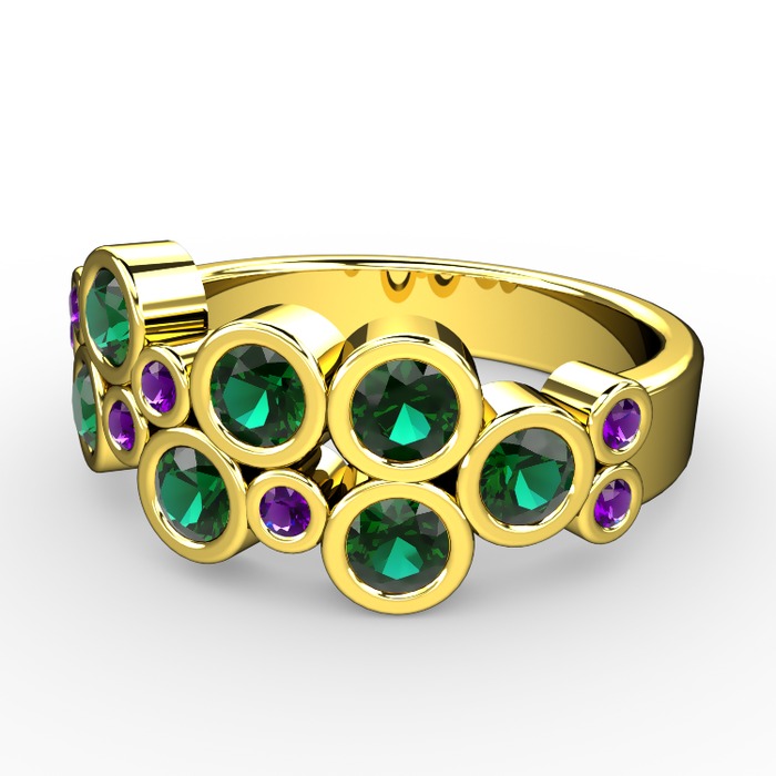Yeşil kuvars ve ametist 925 ayar altın kaplama gümüş yüzük