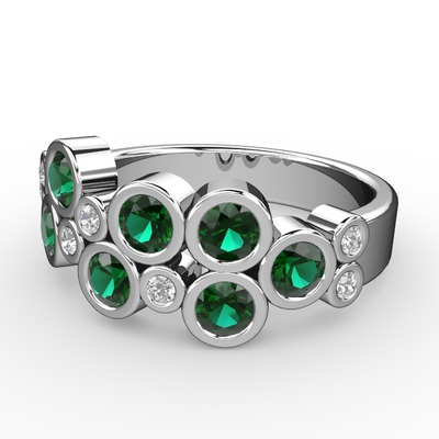 Yeşil kuvars ve beyaz zirkon 18 ayar beyaz altın yüzük