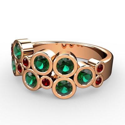 Yeşil kuvars ve garnet 14 ayar rose altın yüzük