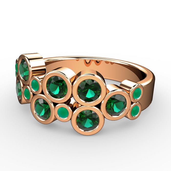 Yeşil kuvars ve kök zümrüt 8 ayar rose altın yüzük