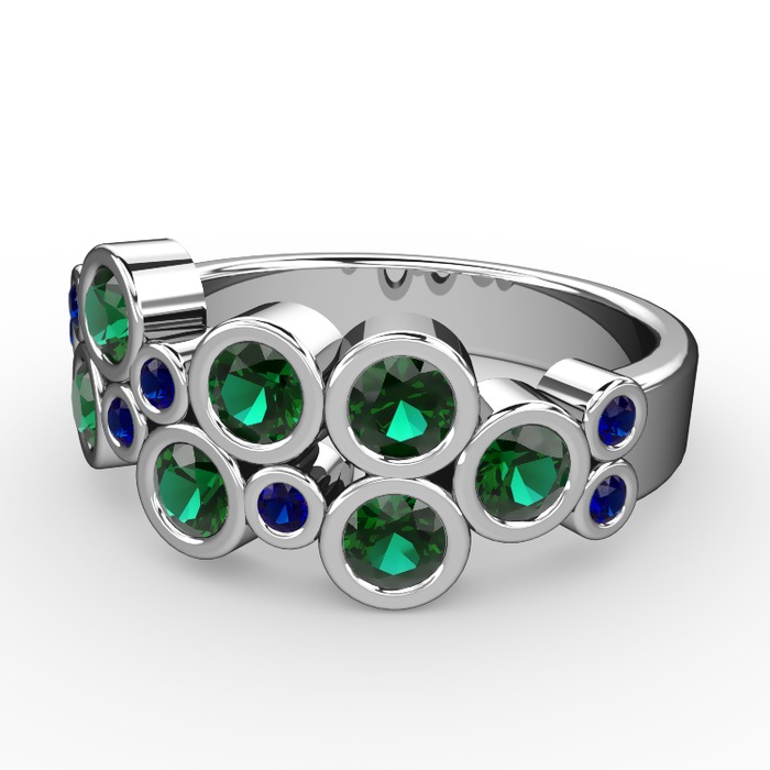 Yeşil kuvars ve lab safir 18 ayar beyaz altın yüzük