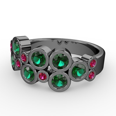 Yeşil kuvars ve rodolit garnet 925 ayar siyah rodyum kaplama gümüş yüzük
