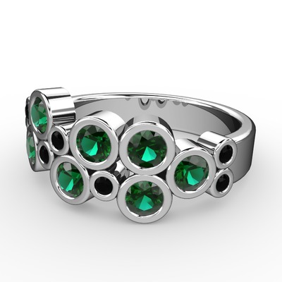 Yeşil kuvars ve siyah zirkon 18 ayar beyaz altın yüzük