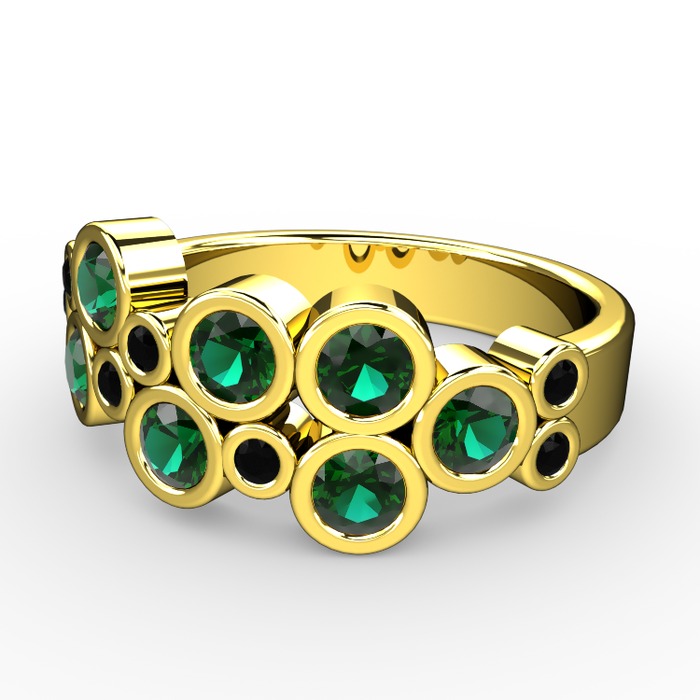 Yeşil kuvars ve siyah zirkon 925 ayar altın kaplama gümüş yüzük