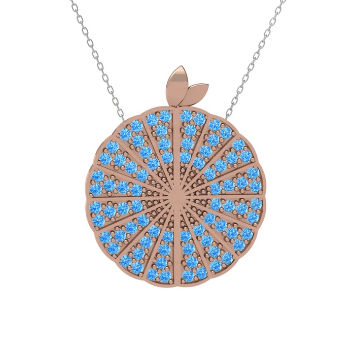 Akuamarin 8 ayar rose altın kolye (40 cm gümüş rolo zincir)