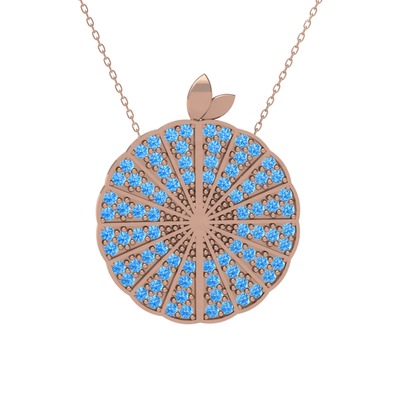Akuamarin 8 ayar rose altın kolye (40 cm rose altın rolo zincir)