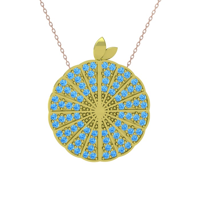 Akuamarin 925 ayar altın kaplama gümüş kolye (40 cm rose altın rolo zincir)
