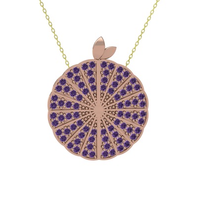 Ametist 8 ayar rose altın kolye (40 cm altın rolo zincir)
