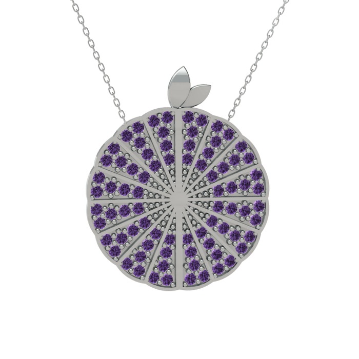 Ametist 925 ayar gümüş kolye (40 cm beyaz altın rolo zincir)