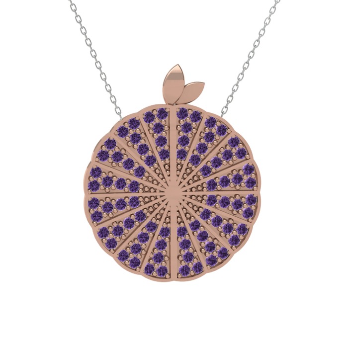 Ametist 925 ayar rose altın kaplama gümüş kolye (40 cm beyaz altın rolo zincir)