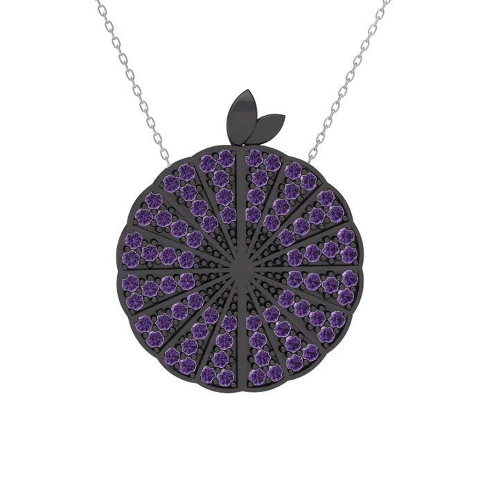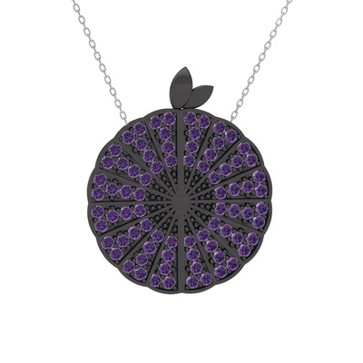 Ametist 925 ayar siyah rodyum kaplama gümüş kolye (40 cm beyaz altın rolo zincir)