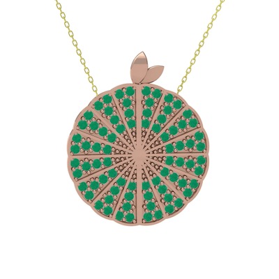 Kök zümrüt 18 ayar rose altın kolye (40 cm gümüş rolo zincir)