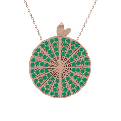 Kök zümrüt 8 ayar rose altın kolye (40 cm rose altın rolo zincir)