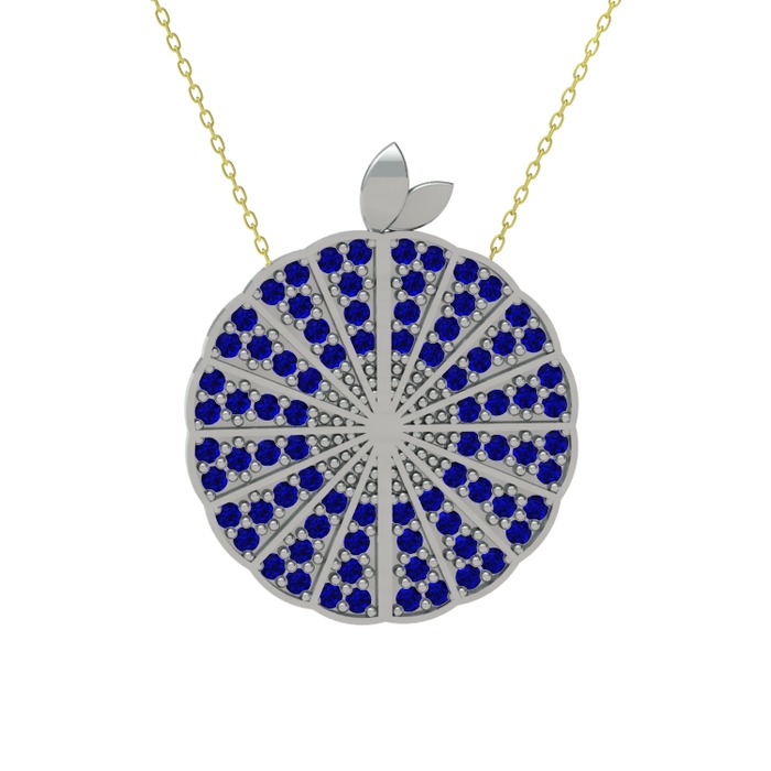 Lab safir 14 ayar beyaz altın kolye (40 cm altın rolo zincir)