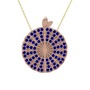 Lab safir 925 ayar rose altın kaplama gümüş kolye (40 cm altın rolo zincir)
