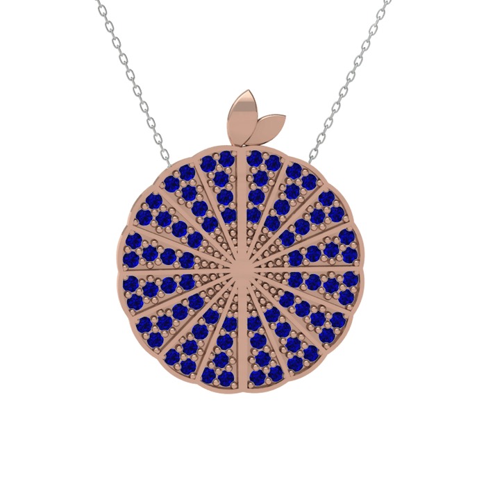 Lab safir 925 ayar rose altın kaplama gümüş kolye (40 cm beyaz altın rolo zincir)