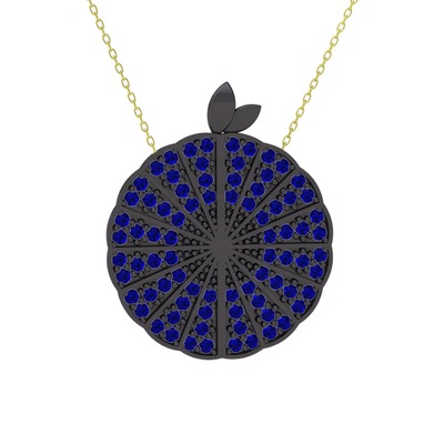 Lab safir 925 ayar siyah rodyum kaplama gümüş kolye (40 cm altın rolo zincir)