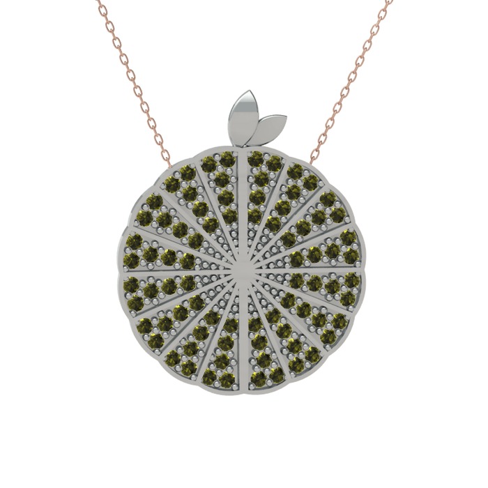 Peridot 18 ayar beyaz altın kolye (40 cm rose altın rolo zincir)